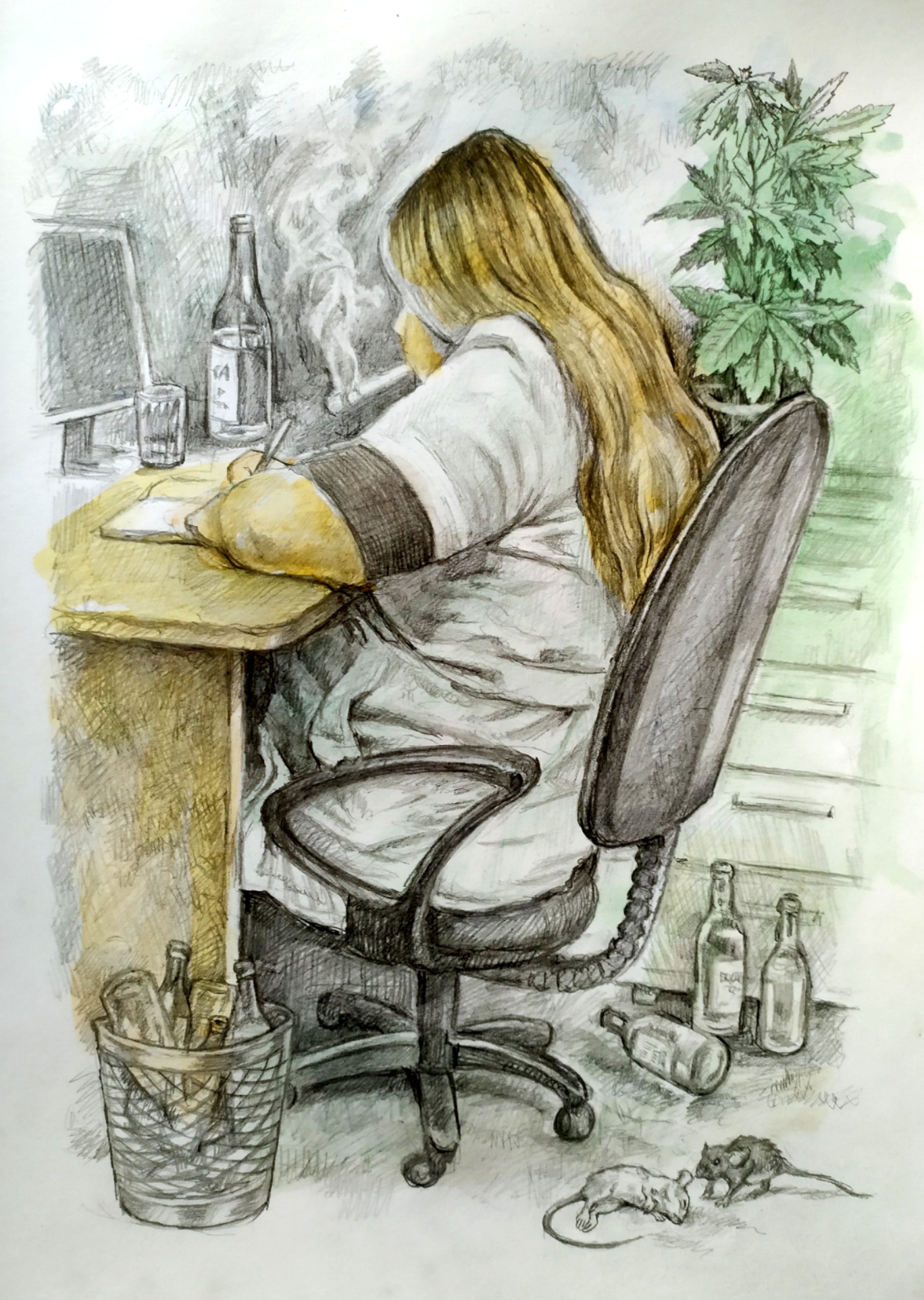 Ездили в наркологический диспансер города Волгодонска, за справкой для замены водительского удостоверения, В кулуарах диспансера, где наркологи нюхают дорожку и курят анашу, в приватной беседе нам рассказали, что за время работы они стали циниками, и уже ничему не удивляются и ни на что не реагируют. Им приходится иметь дело с социально не защищёнными наркозависимыми, которых сразу помещают в VIP-палаты с интерактивным факультативно-принудительным лечением, врачами приятного для взора модельной внешности. В дальнейшем, излечившимся, за государственный счет предоставляется еда и домработница, а бездомным жильё. Постоянно находясь среди наркоманов, врачи наркологи сами становятся наркозависимыми. Почти сразу принимают успокаивающий Реланиум и Феназепам, но скоро переходят на сильнодействующие вещества: кто на горькую, кто курить анашу, кто колоться забродившей уриной, кто надев кулёк на голову нюхает клей "Момент" с фекалиями клопа-черепашки или скунса.. После потребления вышеперечисленного, у них просыпается зверский аппетит, и они жиреют. На картинке вы видите врача нарколога, практикующую на себе психоактивные вещества, алкогольного и наркотического характера.